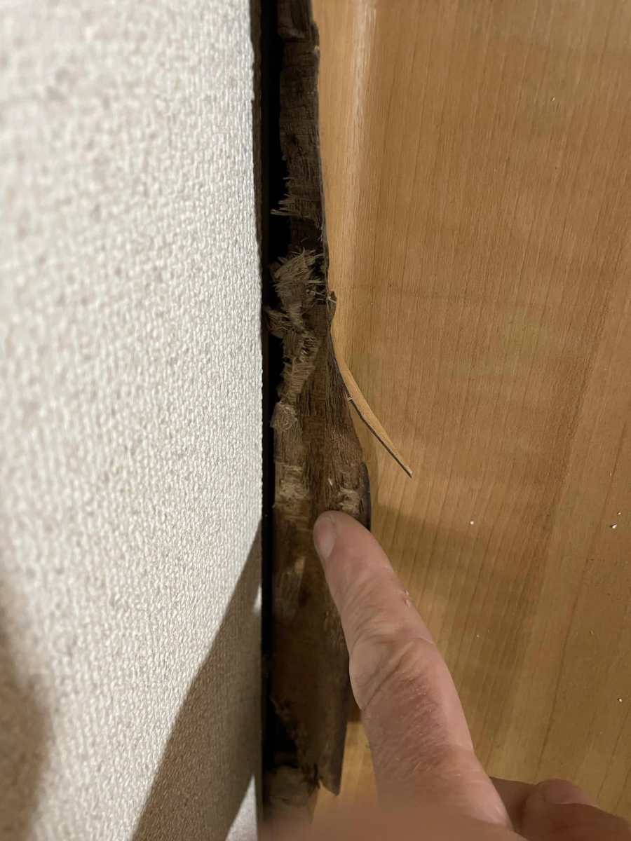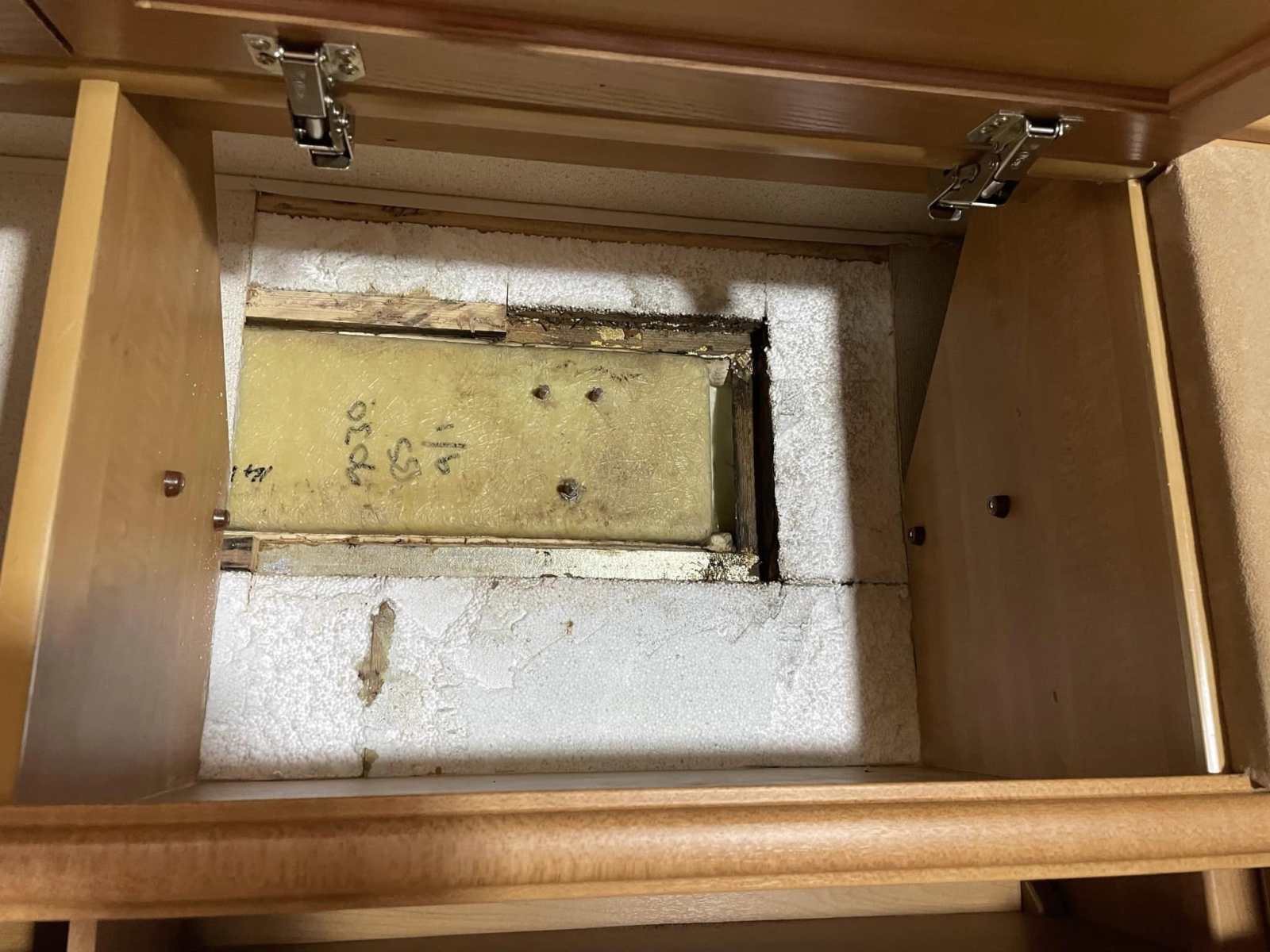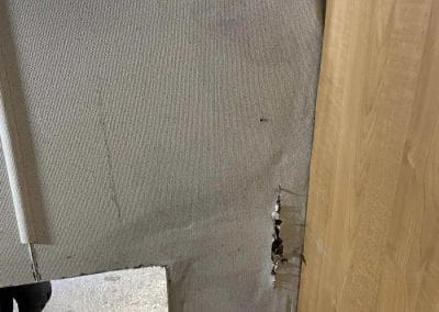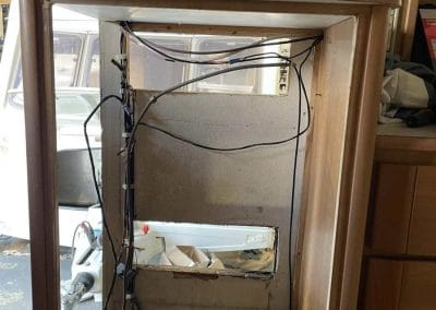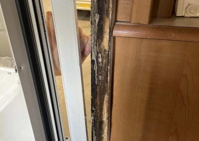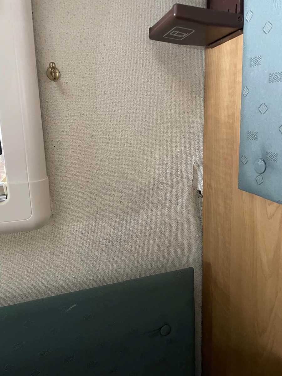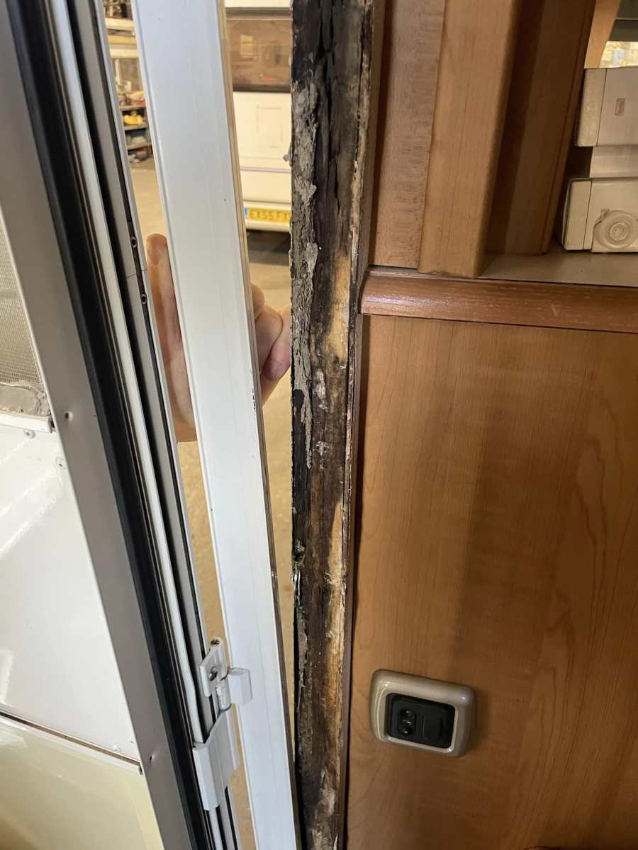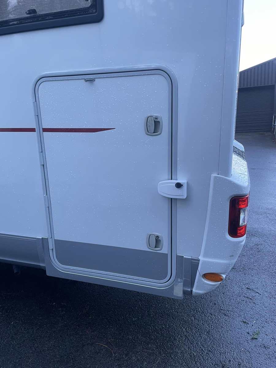 Unfortunately the owner of this vehicle was not aware of the damp until they brought it in for a totally unrelated repair and our engineer noticed the problem. We made our customer aware and they asked for the work to be carried out. It involved quite a lot of work from removing the off side skirts and cleaning sealant off of the skirts and vehicle, removing the internal bed boxes on both sides, removing the outer awning rail, external locker door and frame, all damaged wall boards and timbers and replacing with new and refitting on new sealant where required, then the interior could be put back together.