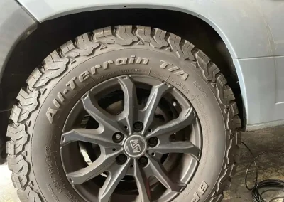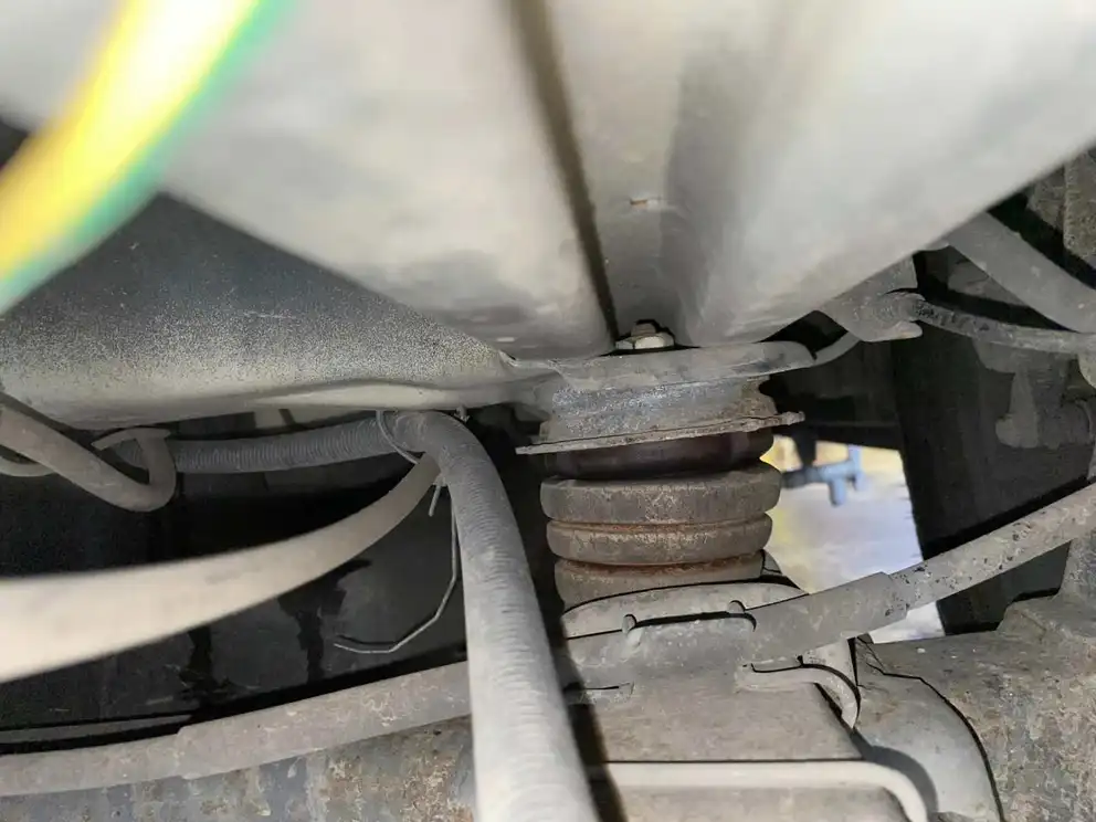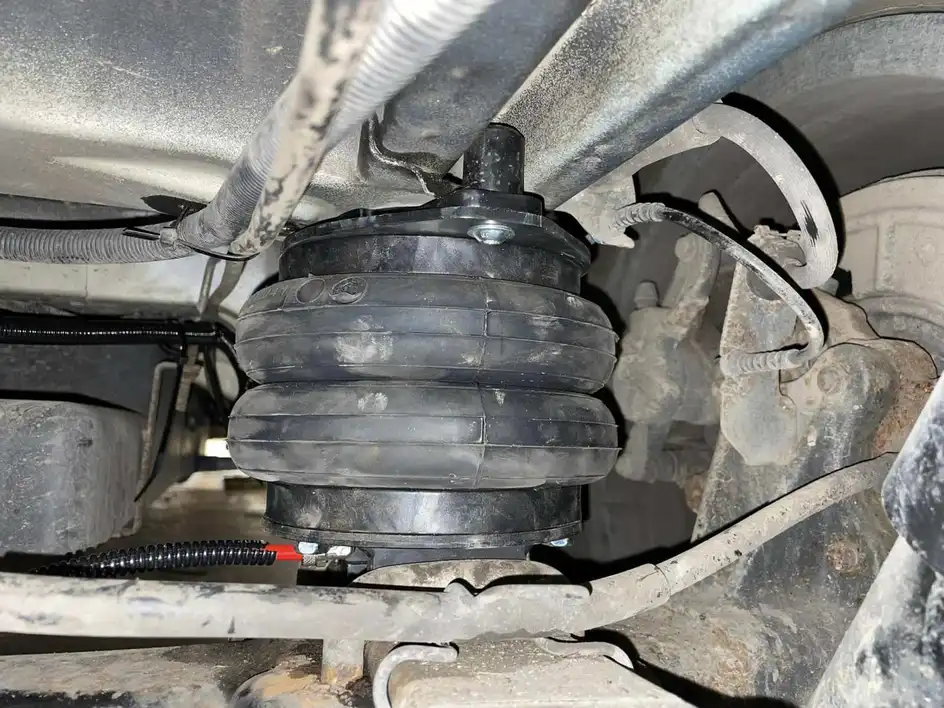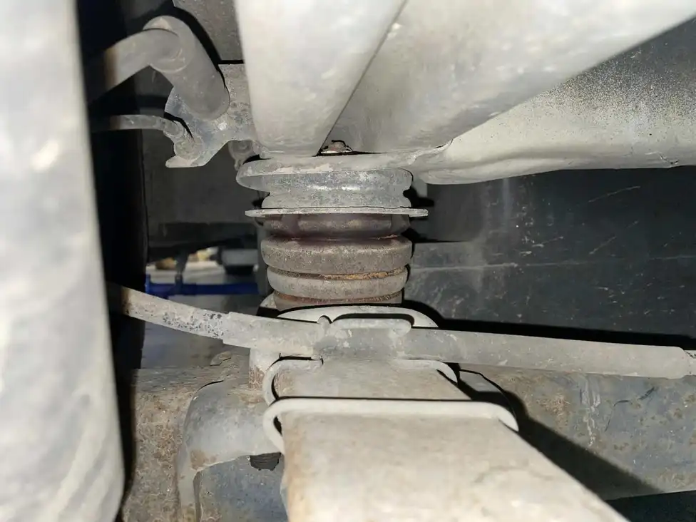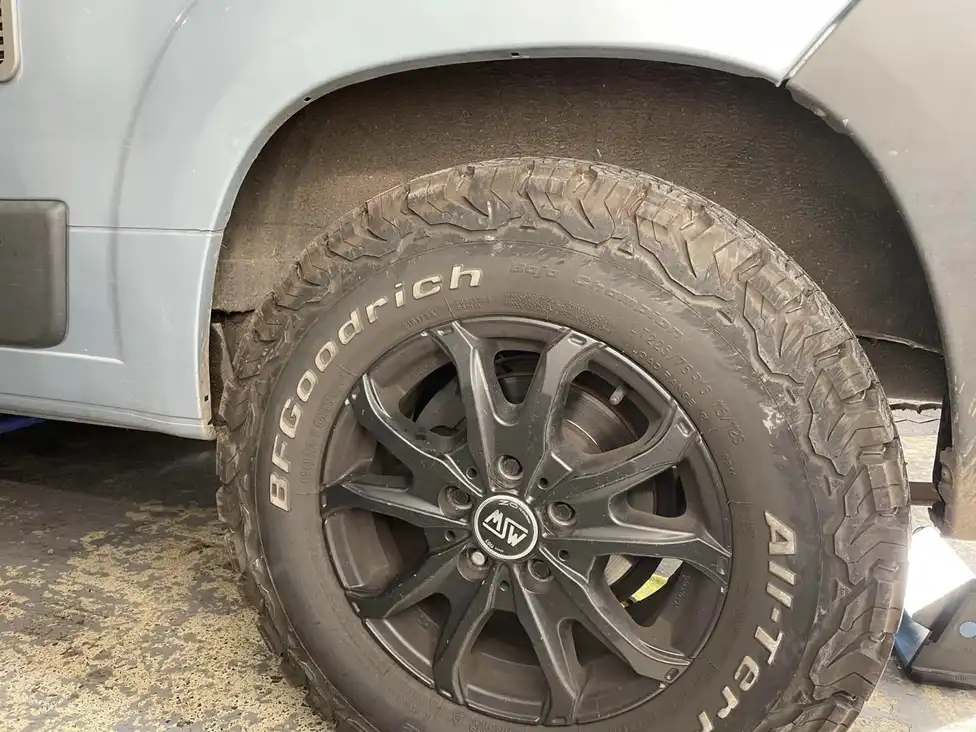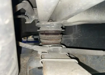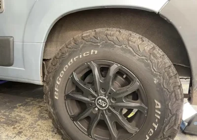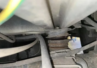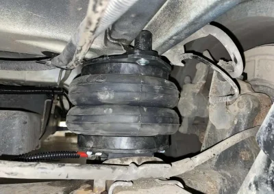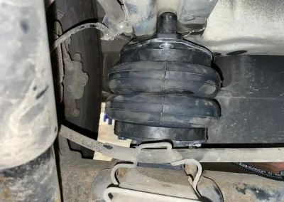 Air suspension fitted to the rear of this vehicle. The photos show that the suspension was right down on the bump stops and the wheels riding very high in the arches meaning that there was very little suspension available having a negative effect on comfort and handling. After the air bags were fitted the ride height was back to a much more comfortable level aiding comfort and handling.